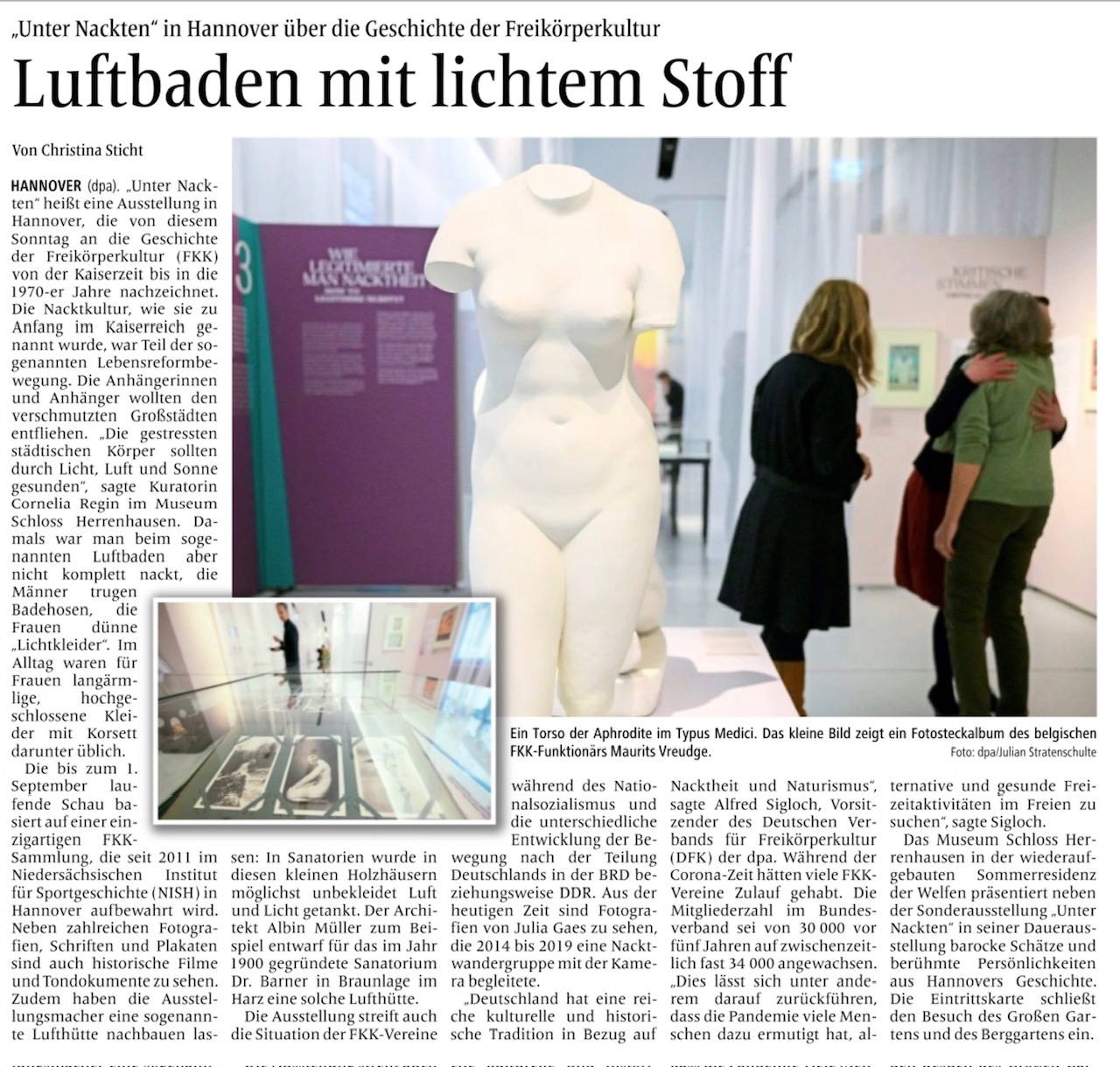 Hallo liebe FKK-Freundinnen und FKK-Freunde! Am 30. Juli 2024 gibt es für uns eine Führung um 18.30 Uhr im Museum Schloss Herrenhausen in Hannover: Unter Nackten - Geschichte der Frei-Körper-Kultur!